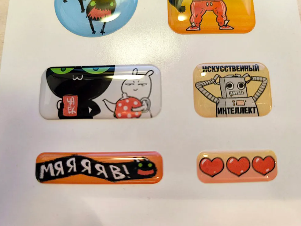 Пак 3D стикеров, покрытых полимерной смолой. Яркие и заметные они прекрасно держатся на различных поверхностях. Смешные герои украсят любой предмет в доме, а также ваши гаджеты.